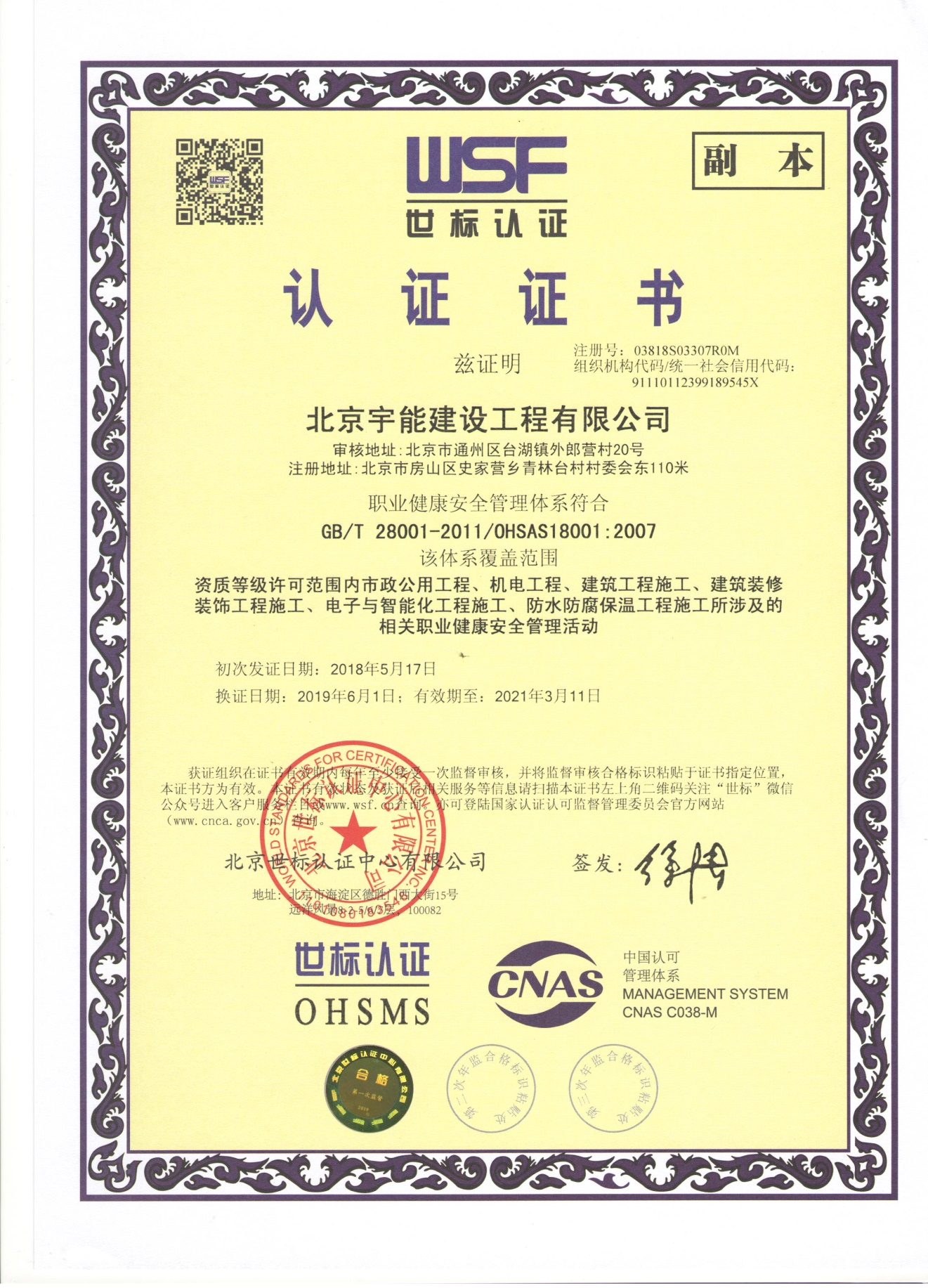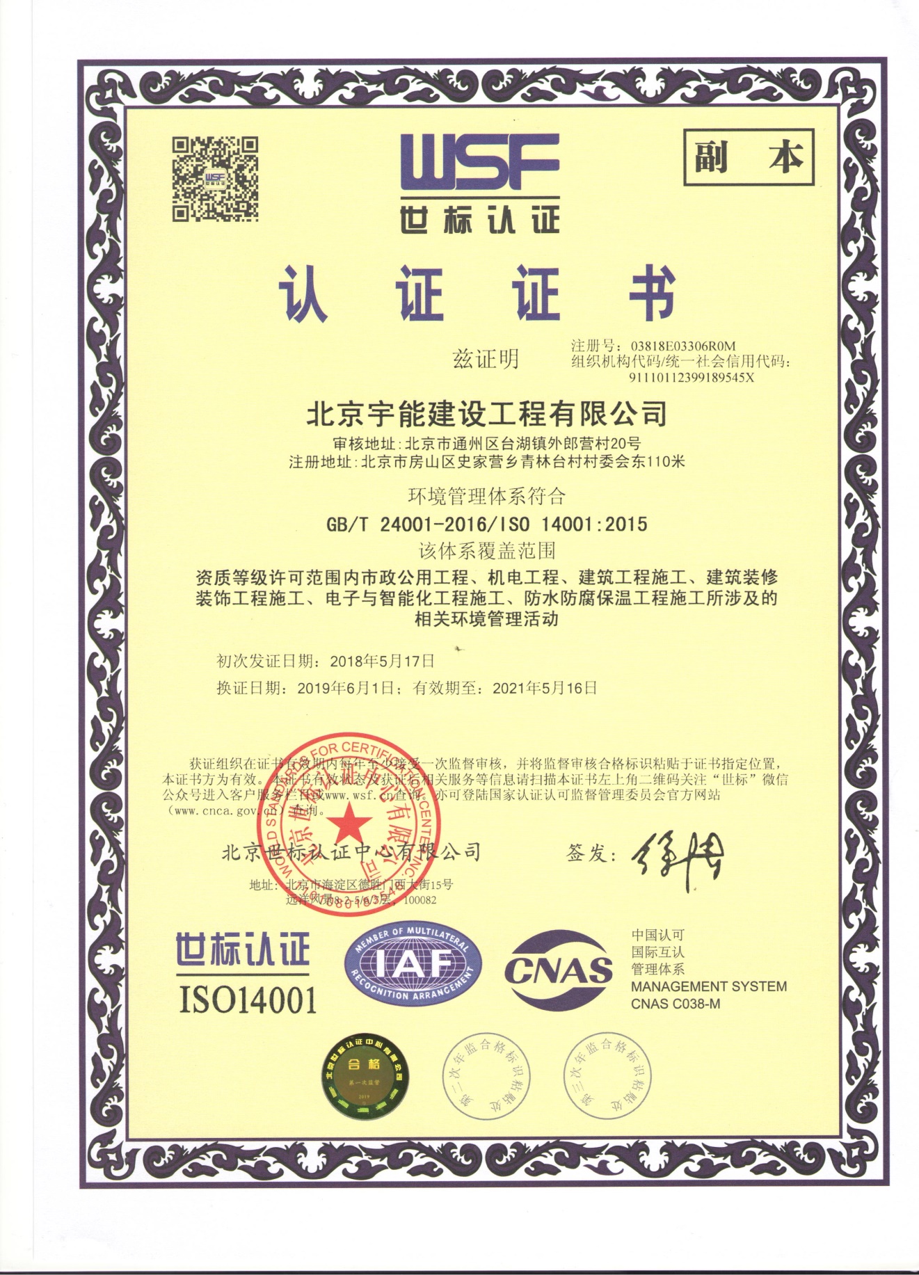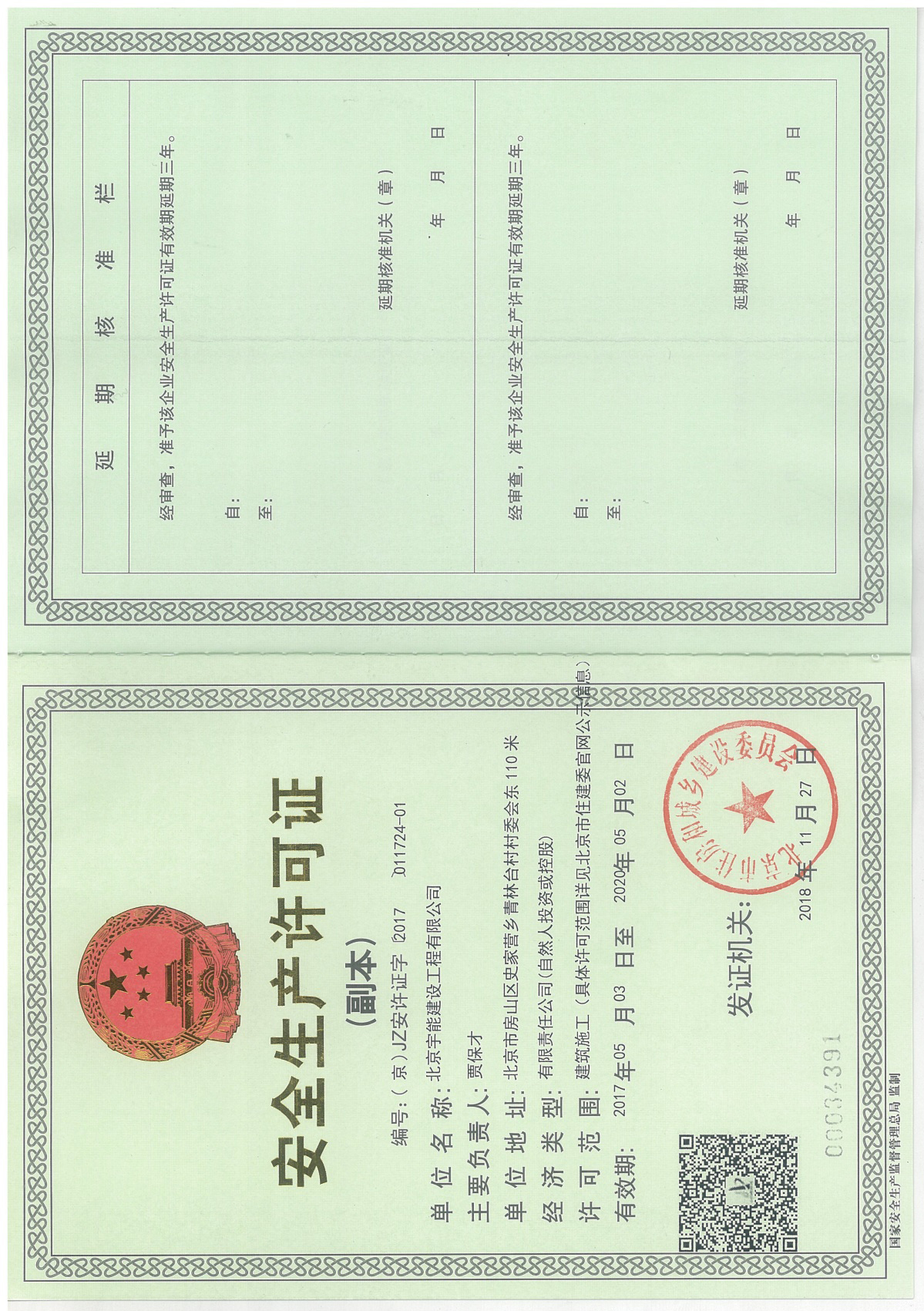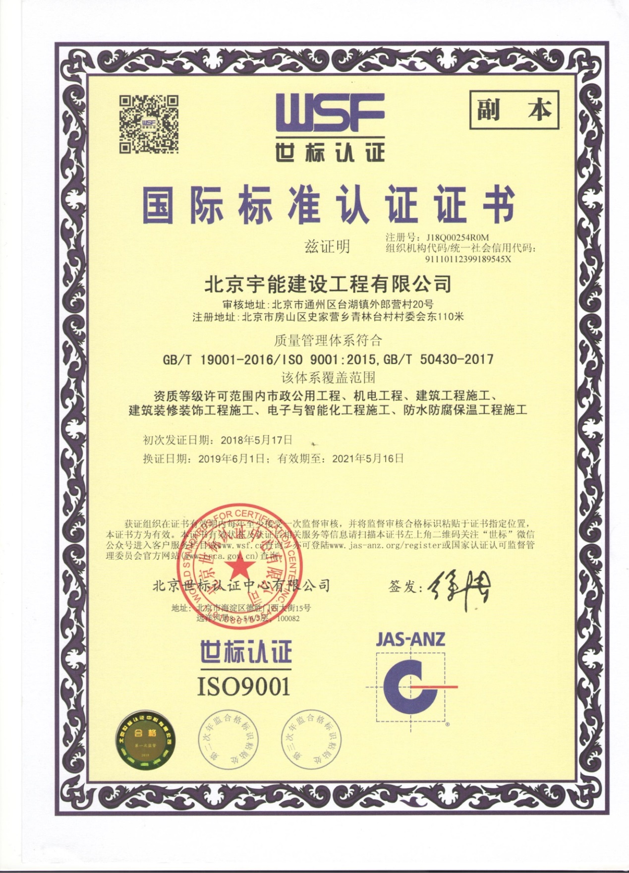北京宇能建設工程有限公司成立于2014年5月16日,前身是北京博遠天宇電力科技有限公司,注冊資金6600萬元。具有《市政公用工程施工總承包叁級》、《機電工程施工總承包叁級》、《建筑工程施工總承包叁級》、《建筑裝修裝飾工程專業承包貳級》、《電子與智能化工程專業承包貳級》、《鋼結構工程專業承包叁級》、《防水防腐保溫工程專業承包貳級》、《建筑幕墻工程專業承包貳級》、《模板腳手架資質》等;同時榮獲AAA誠信企業證書、AAA級誠信經營示范單位、AAA重合同守信用企業證書、AAA級企業資信等級證書。鑒于公司領導的為人誠信,作風良好,經315全國征信系統誠信企業認證中心頒發誠信企業家榮譽證書及誠信經理人的榮譽稱號。